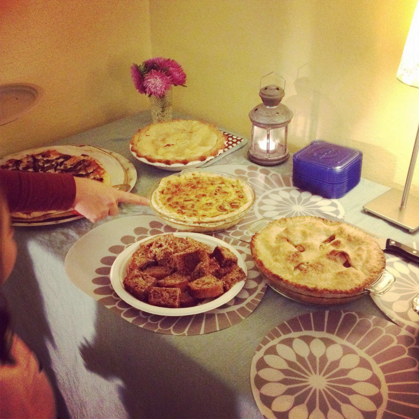 Anyway, there was mushroom quiche, and spinach quiche, and sweet fruit pies, and samosa pies, and pizza pies, and pumpkin pie, and tomato pie, and pot pies...well. You get the picture. In case you don't get the picture, here are some pictures.